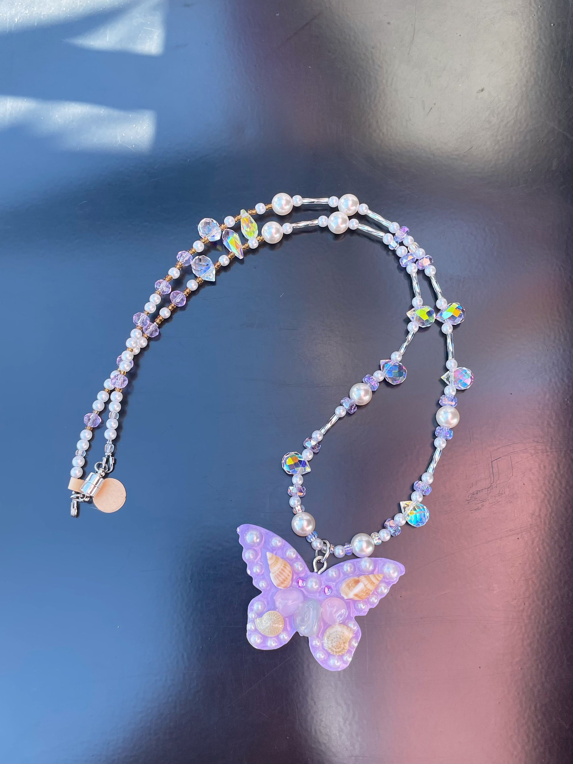 Butterfly sweater necklace 24 inches Purple